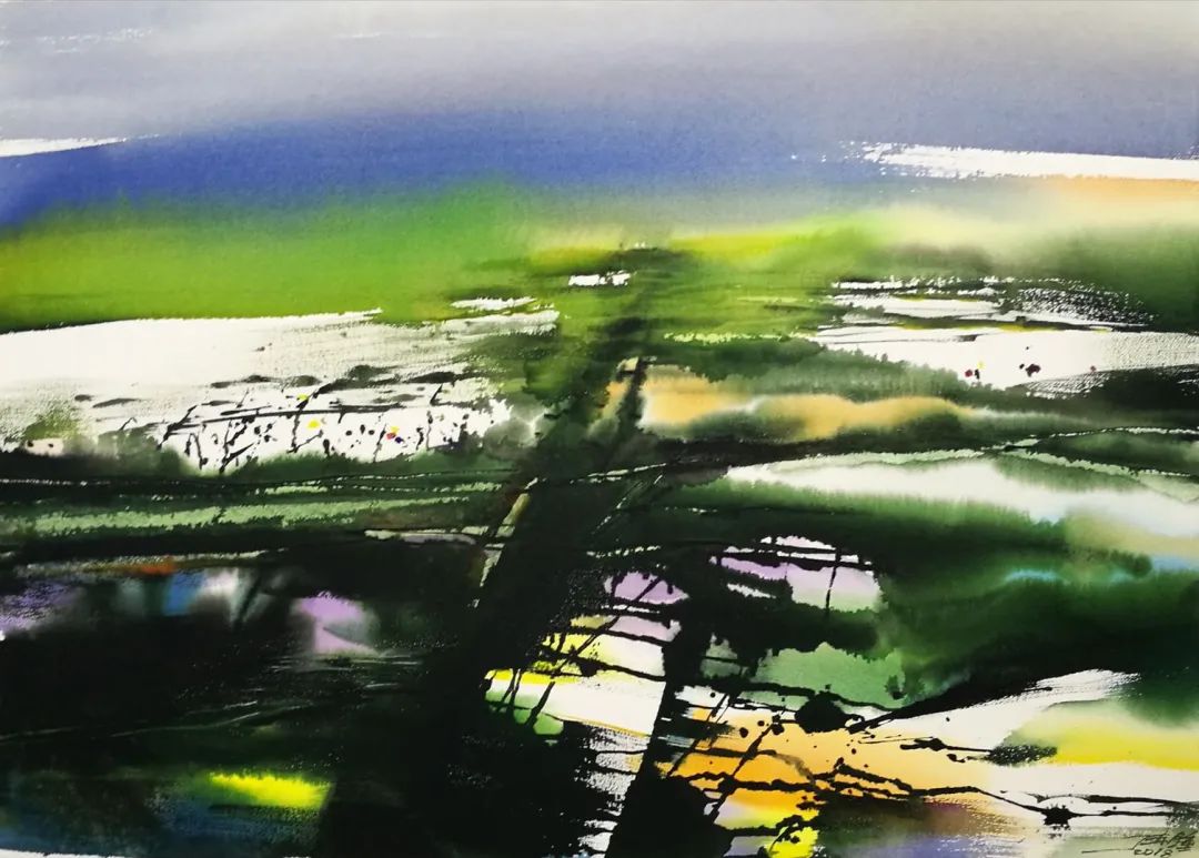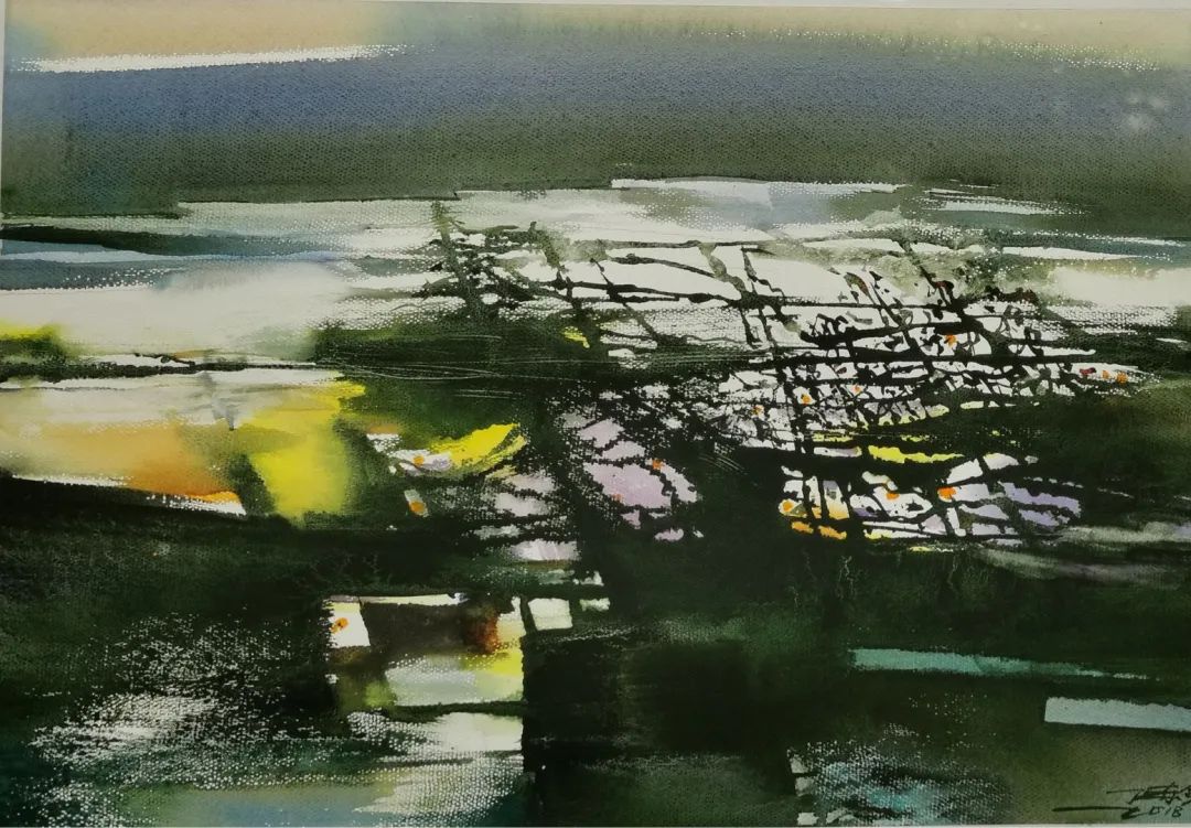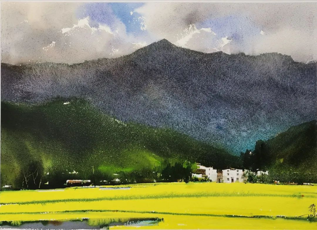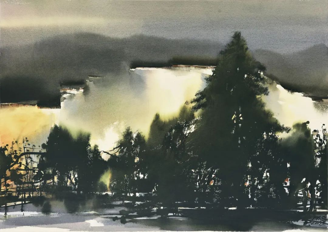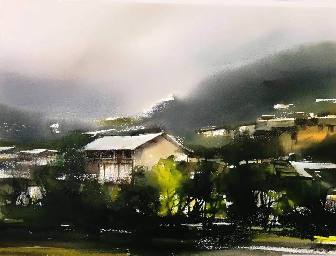 绘画创作,画家有各种各样的选择,他可以选择写实主义的也可以选择表现主义的绘画形式,这种选择会使我们的画面产生完全不同的效果和不同的审美情趣, 即便是我们面对同样的风景,不同的画家也可以有不同的选择,画家的感受同样来源于所面对的那片风景。画家既可以完完整整的描绘对象,以自然主义的创作方式完整的表现对象,这曾被认为是绘画的一种很高技巧的审美境界。画家也可以选择不写实的描写对象的手法, 画面与所面对的风景不一致,这种选择对画家主体创造力有了更多的要求,这种主体性要求的绘画表现形式是现代绘画创作的一个重要标志,即怎么画或者怎样经营这个画面本身才是画家的重要追求。接下来共同欣赏这些水彩画作。
