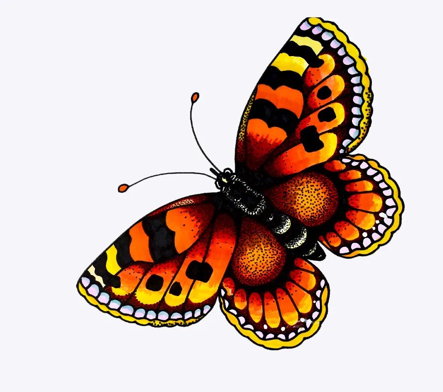丰富和调整画面的细节和色彩,蝴蝶的颜色可以通过图片写生进行创作,也可以搭配你喜欢的颜色