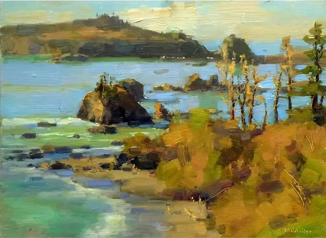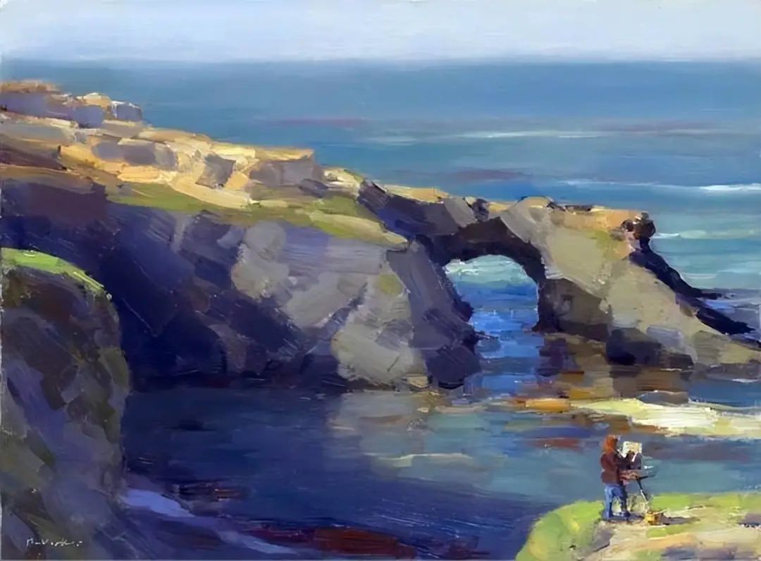 Jim McVicker,即吉姆·麦克维克,是一位美国著名画家,以其对风景画的深入描绘和独特风格而闻名。他的画作风格,可以说是多元且富有深度的,以下是对其画作风格的简述:麦克维克的画作充满了对自然界的深刻观察和敏锐感受。他的风景画,无论是山川湖海,还是森林草原,都展现出了大自然的宏伟与细腻。他擅长捕捉光影的变化,色彩的运用也极其精准,使得画面既真实又富有诗意。在他的画作中,观众仿佛可以感受到微风的吹拂,阳光的照耀,以及大自然的呼吸。另外,麦克维克的画风在不断地变化和进化。他不拘泥于任何固定的规则或方法,而是根据自己的感受和创作的需要而调整。这使得他的画作既有传统绘画的深厚底蕴,又有现代艺术的创新元素。他的作品中既有对细节的精细刻画,又有对整体构图的巧妙安排,使得画面既丰富又和谐。