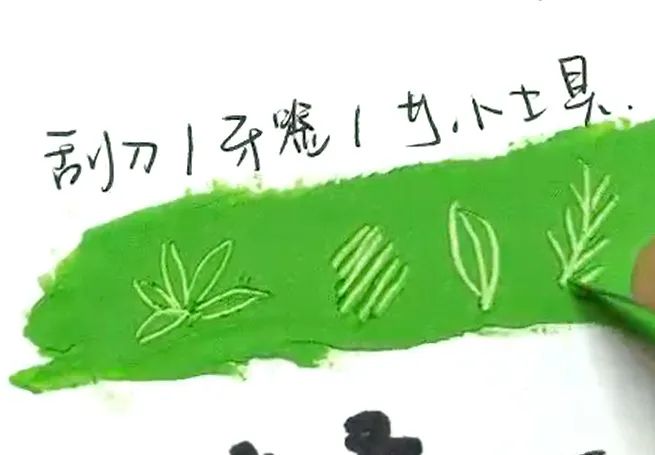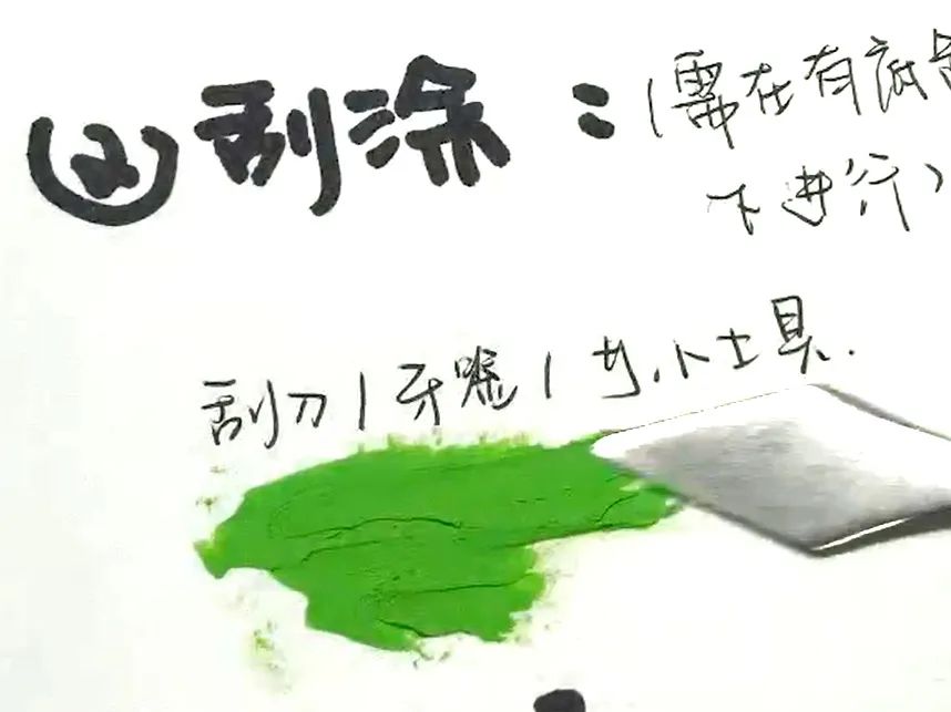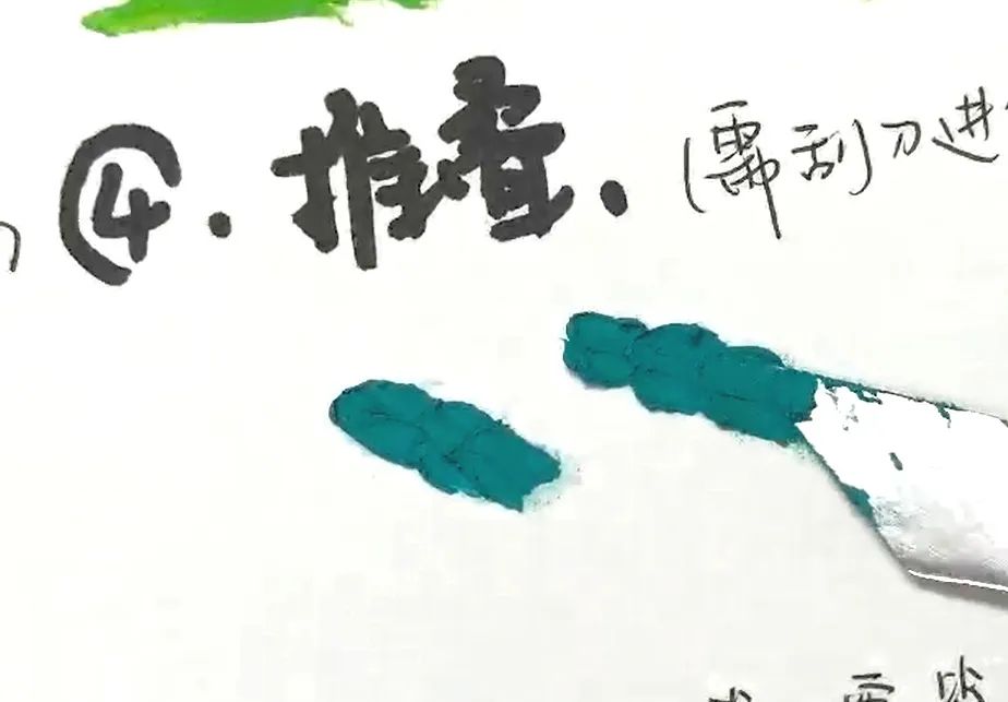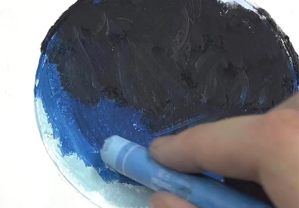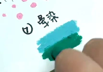 先涂一种颜色,然后在上面涂另一种颜色,两种色彩相互混合,产生第三种颜色。上下色彩揉搓混合,一般遵循 浅色加深色的原则。