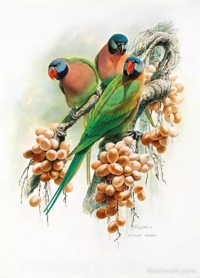 曾孝濂是一个想到就一定努力做到的人。为了这本鸟的画册,他做了很多准备。还是上世纪九十年代,工作原因,曾孝濂在北京植物所待了一段时间。当时中国植物志的编委会在北京植物所的动物园里面,他每天到鸟园观察鸟的姿态、画速写、拍照片,为画鸟积累了很多资料。回到昆明后,他又得到昆明动物所一位鸟类专家杨岚的热心帮助。为了抠鸟的细节,他还经常跑去昆明动物所标本馆,“因为任何一个活的鸟不会让你去写生的”。开始画的时候,他为不同鸟类配以栖息地,“那是我的优势。我查阅相关的资料,了解鸟类的生活环境,然后搭配相应的植物”。