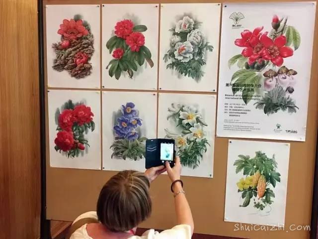 第十九届国际植物学大会植物艺术画展上,一位参观者正在拍下的,便是他的作品。