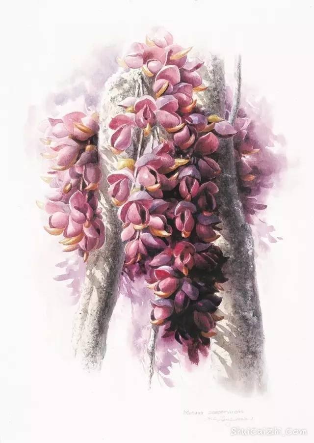 画干标本一般要把整个的花取下来放到水里煮开,让它尽可能去复原,复原后再在解剖镜下面观察结构。“植物软了以后比较接近活的,就稍微好一些。”植物科学画必须要对着标本作画,“没有标本不能画,不应该画。我们所有插图必须有根据,一定要写上根据某一号标本。不看标本来画,那是错误的”。