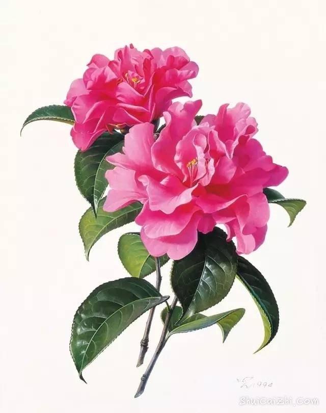 大银红,滇山茶园艺品种,曾孝濂绘。图片来自《云南花鸟》