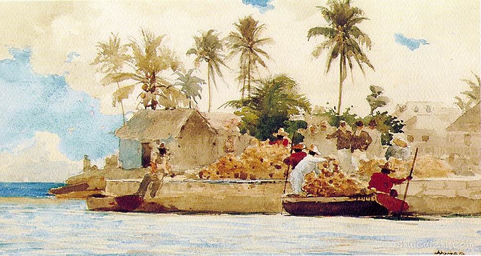 [23] 1885 Sponge Fishing, Nassau watercolour