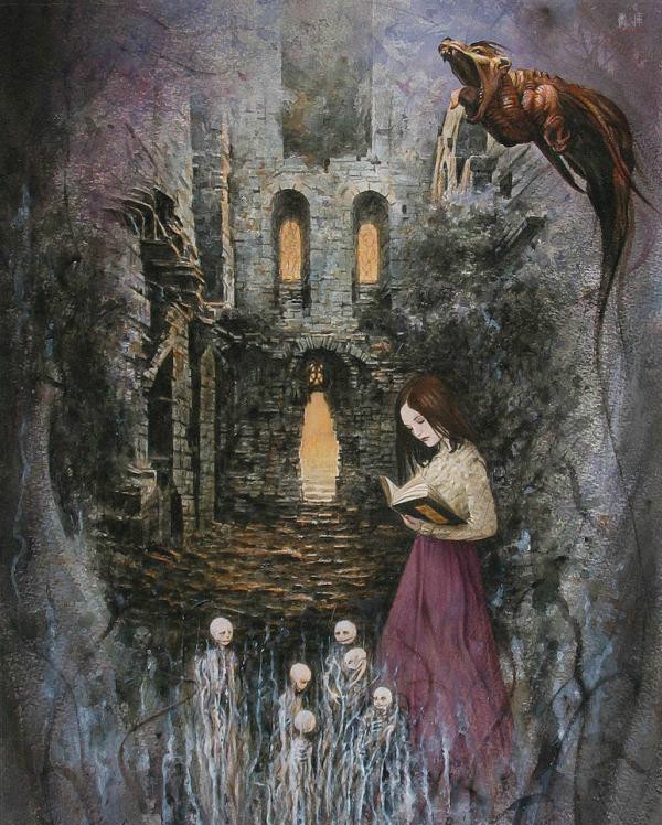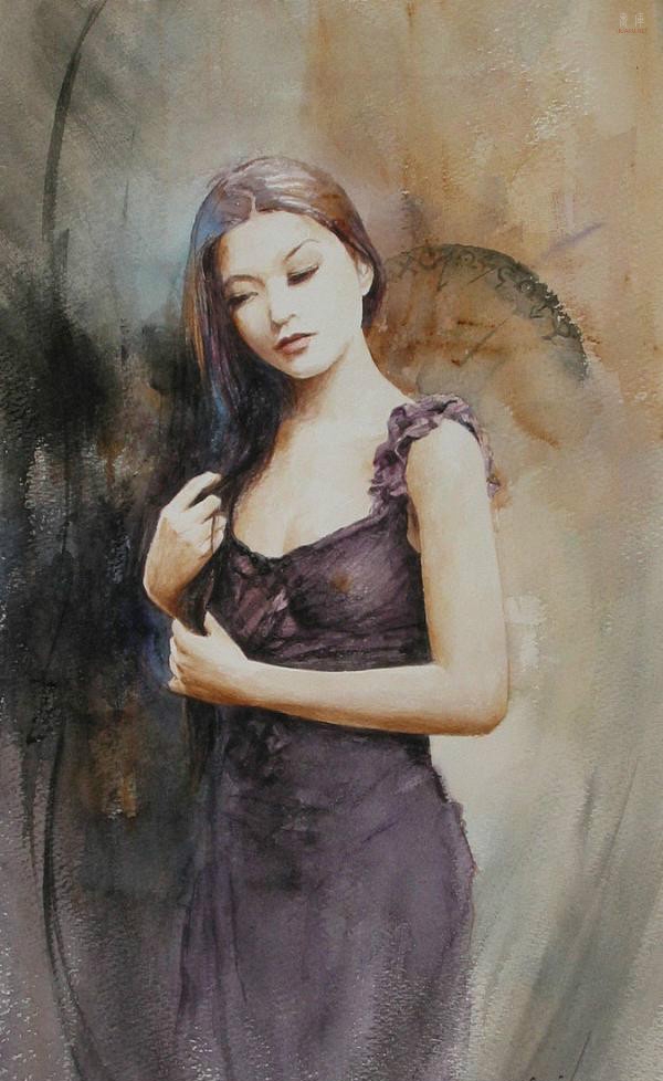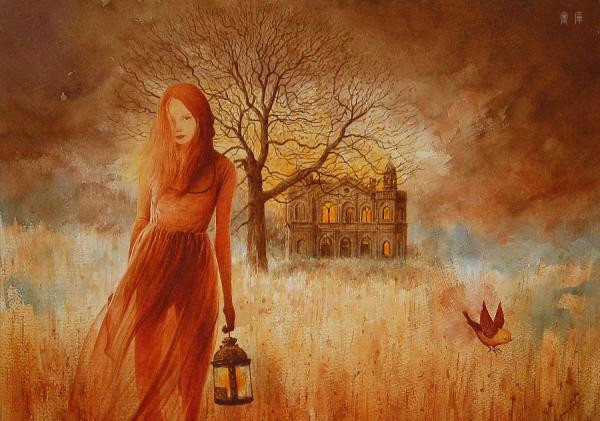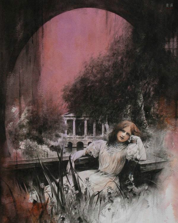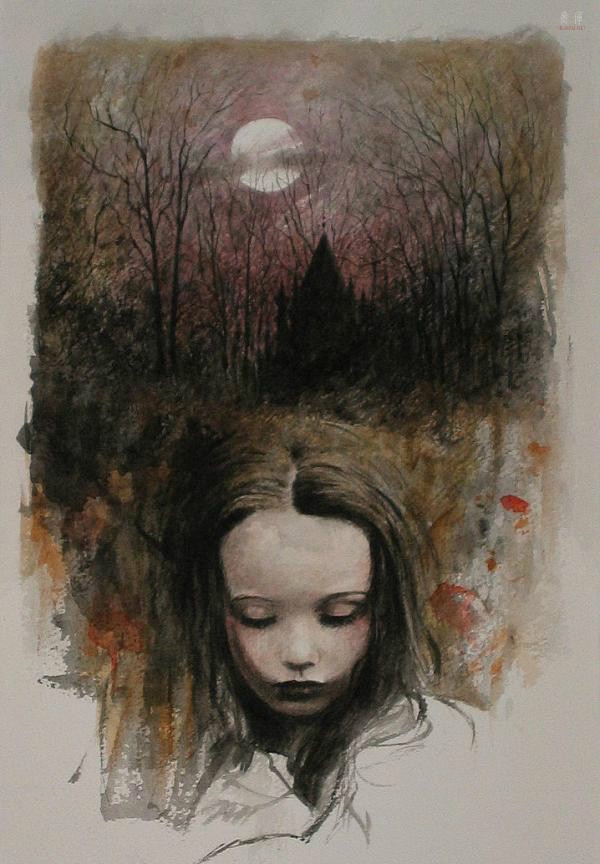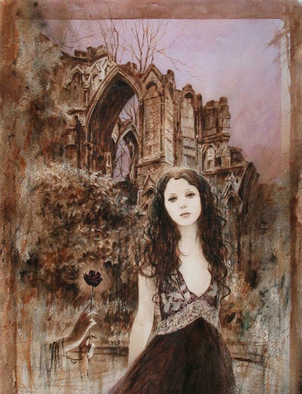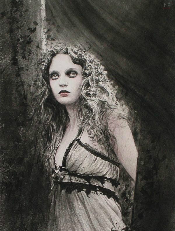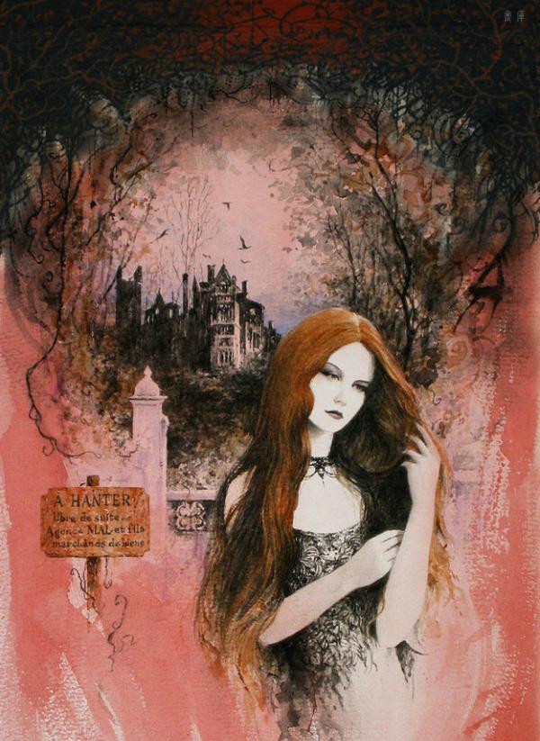 法国画家GILLES GRIMOIN黑色神秘哥特风的水彩人物画作品欣赏!