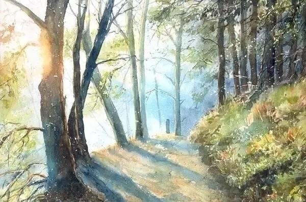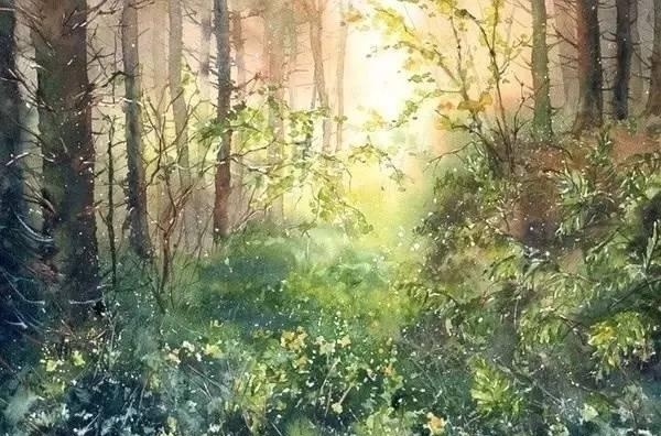 风景画家画一棵树,可以把它的形态发挥到极致,至于森林的话,氛围的表现却更重要。看了波兰画家Malgorzata Szczecinska的水彩森林系列画作,让人心神向往。一直以来,所谓的森林印象就是郁郁葱葱的绿色,不想从女画家的作品见识了各种森林景象,特别喜欢的是阳光从树林之间的缝隙投落,渲染出迷人的光彩。