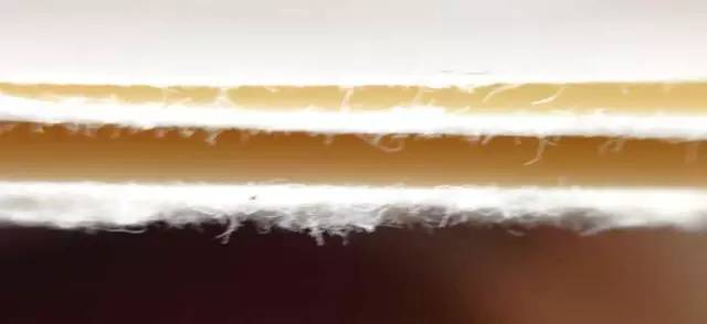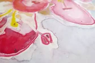 糙面纸:吸收性最强的一种纸,易出肌理,不易画细节。涂群青色和暗橙红色的混合色,偏重的群青色颜料落进了纸张的凹陷处。