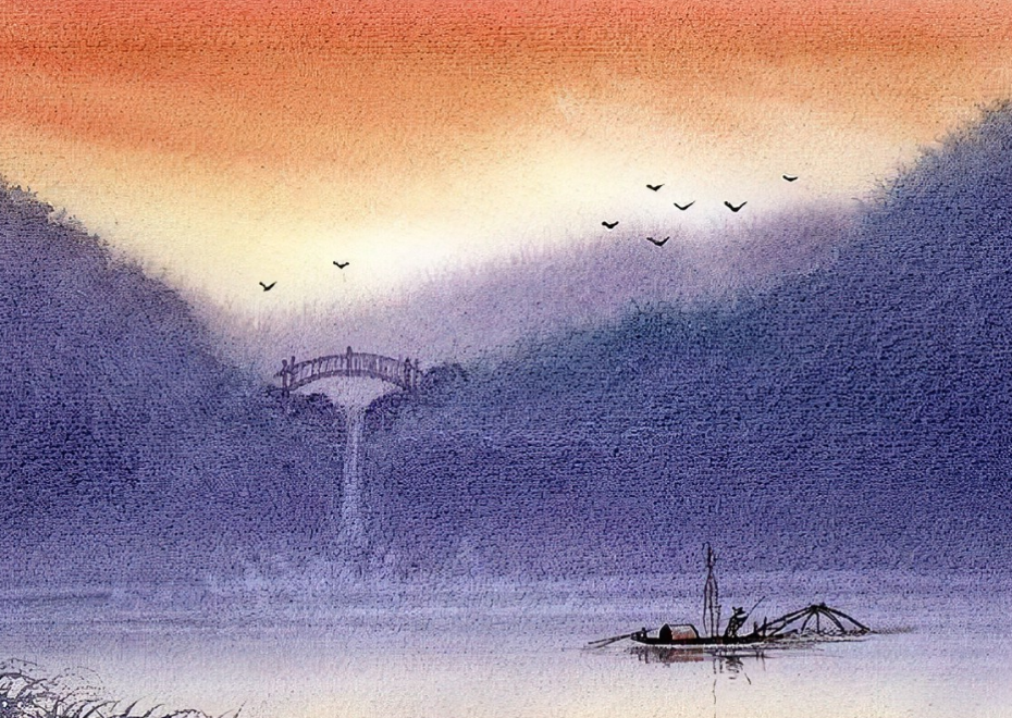 渗化法是水彩画中的一种基本技法,渗化法可用于表现云或草丛等。水彩画渗化法的操作步骤如下