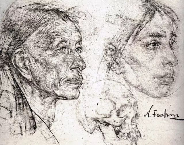 费欣为俄罗斯培养了大批天才的艺术家、教育家。他的教认真的,上课的时候他总是穿着朴素繁洁,嘴里经常叼着一支雪茄默默地从一个画架走到另—个画架旁,特别专致地观察每个学生的习作。如果发现好的苗头,他会靠近去说:“您的画,依我看,很不错。”然后便拿起铅笔和画笔热情严肃地修改画面。他常常把自己的画架和学生们的画架摆在—起,与学生们—起画模特儿,这是一种直观有效的示范教学方法。晚上,他们坐在画室里,费欣就像换了个人,他与朋友和学生们热情地谈论着俄罗斯著名画家克拉姆斯克依、列宾、谢洛夫,谈起西方画家荷尔拜因、伦勃朗、法朗斯u哈尔斯……谈从他们那里获得的教益。费欣也常谈起现代派,他说:“你们不要听他们的,不要离开自己正确的道路。那一套是赶时髦的东西,今天穿窄裙,过几天又要穿肥大的,你们不要学这个,这是把自己引向虚伪的道路。”