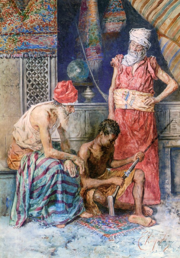 这一幅仍是精雕细刻。描画的是阿拉伯人。