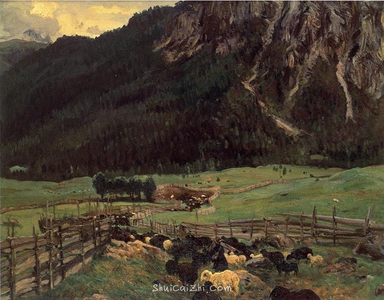 羊群、围栏、草场、山——普通一景,确如此耐看!是依赖于画家的绘画水平,是绘画的技术决定一切。