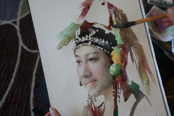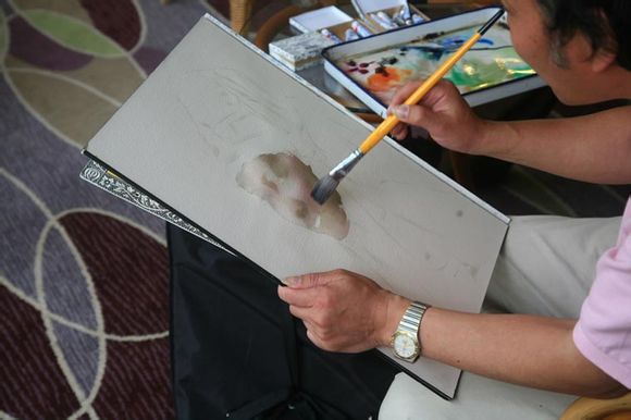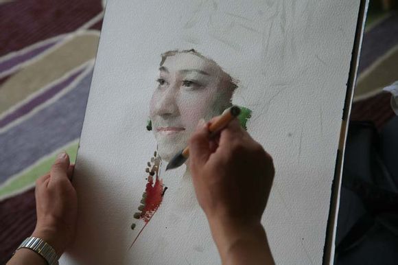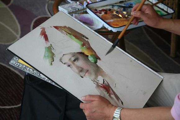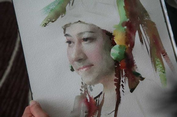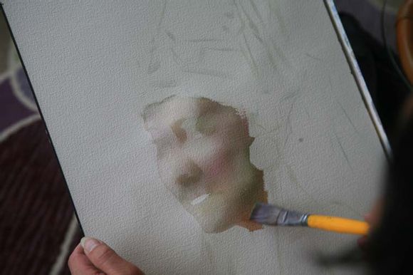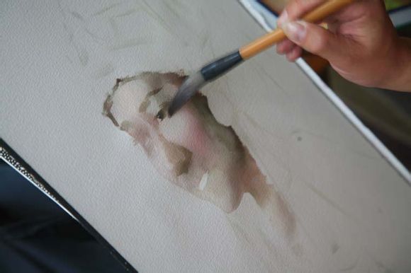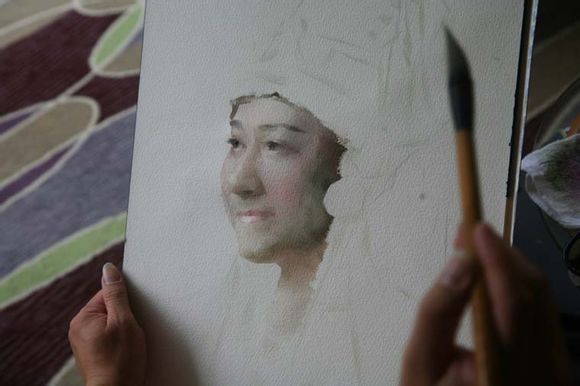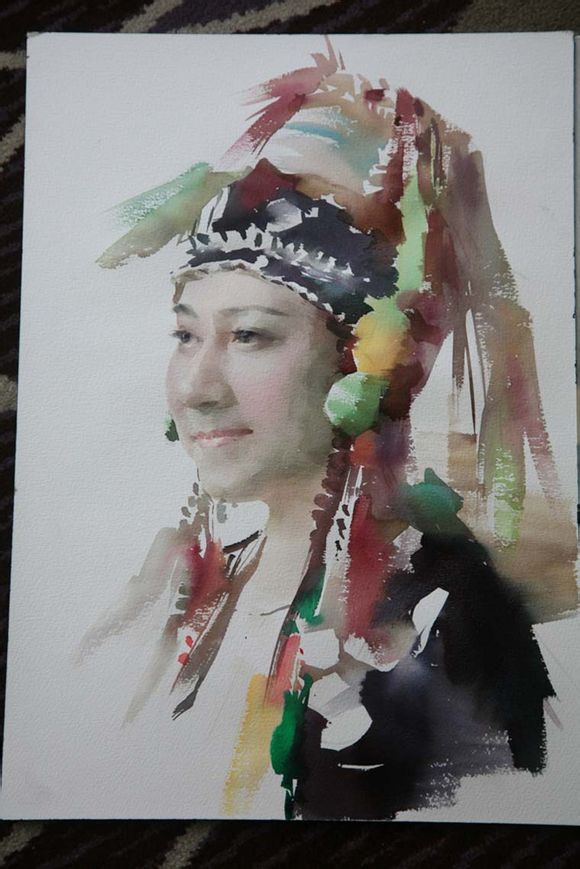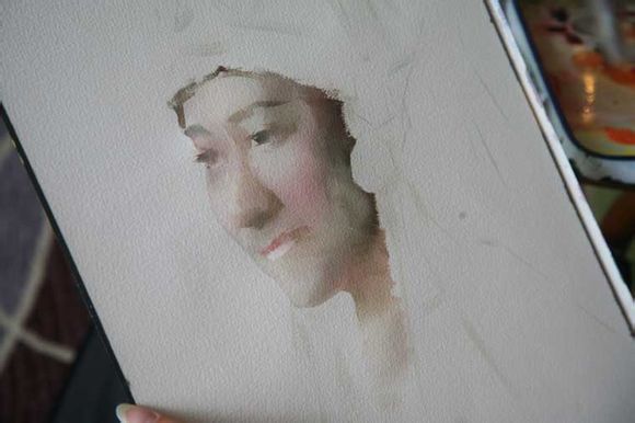 上海水彩画家柳毅的水彩人物写生步骤图,为大家示范。