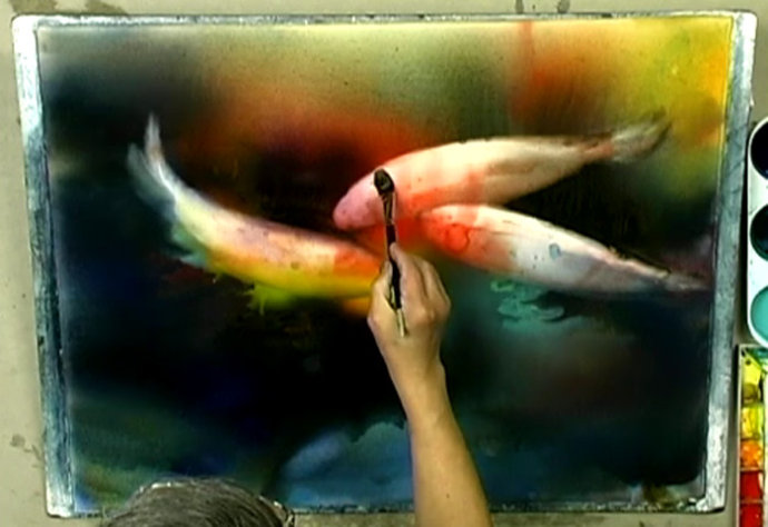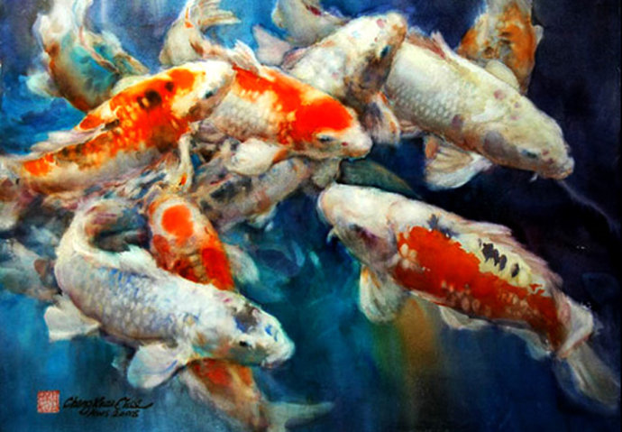一位美国华裔水彩画家徐靖沂(Cheng-Khee Chee)。他的水彩锦鲤鱼曾经在这几年美国水彩界产生震撼。尽管他使用的是纯湿法(详见http://www.chengkheechee.com /galleries/04/index.html),但也运用了水彩减色法。