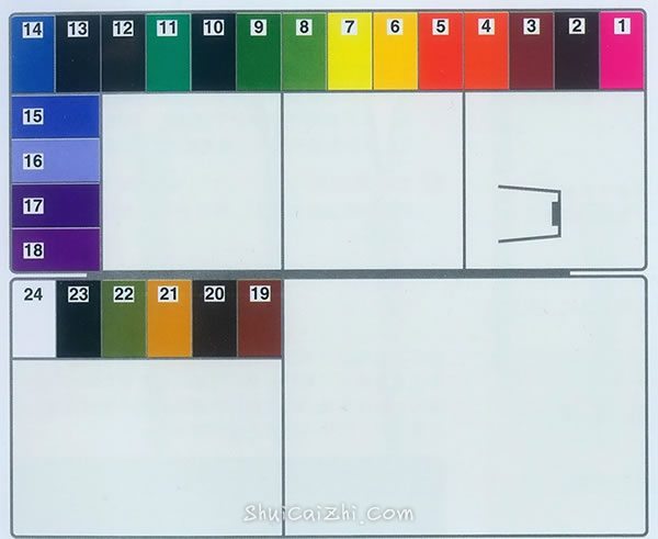 为了作画补充颜色方便,可以为每个格编号或写上色彩名称。若是按色相顺序排列颜料,不仅容易分辨,也容易感知色彩效果。