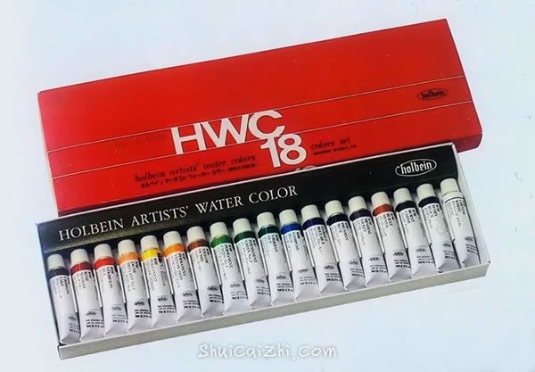 在这里我们使用了HOLBEIN的透明水彩1 8色颜料套装和ATELIER公司的No.1000 I铁制的可调漆调色盘l调色板。本书使用了可注入24色的调色板和18色基本水彩颜料套装。普遍品牌的水彩颜料,基本都可以相互混色。