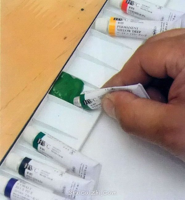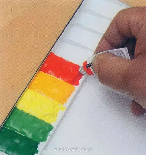 3. 慢慢地从管中挤出水彩颜料,注意不要让空气进入。