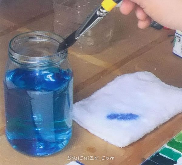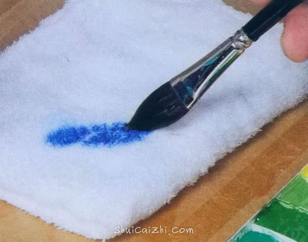 7. 笔上多吸取的颜料,要么在调色板的边沿上捋一下,要么利用毛巾吸出去,从而调整笔的颜料含量。