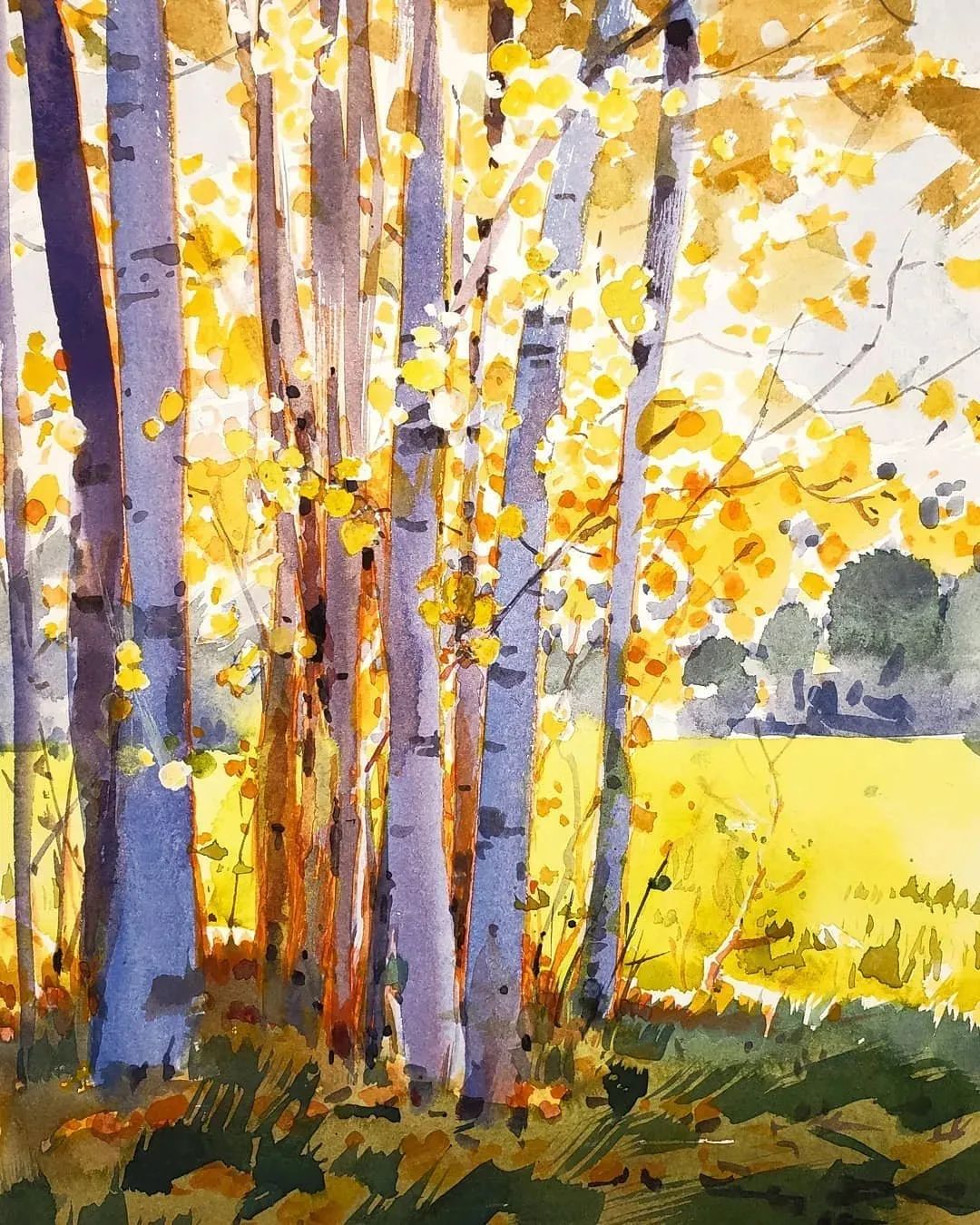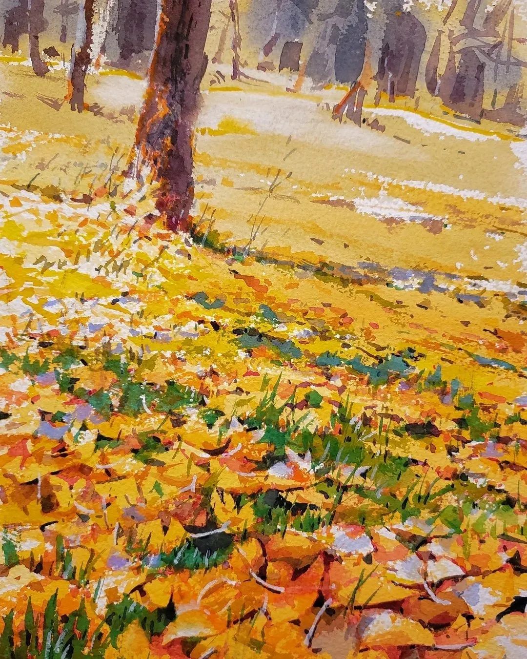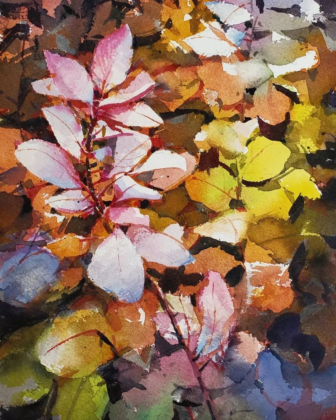 钟永宏:从艺术家到水彩大师 美术画家 shuicaimo · 2024-04-18 在这一年四季里你最喜爱哪个季节呢?是蕴含着无限绿意,生机勃勃的春天还是炎热炽盛、虫鸣鸟叫的夏天或白雪皑皑,银装素裹世界的冬天而我相信很多人也会喜欢充满诗意的——秋天 层层叠叠而耀眼的金黄色是秋天最浓墨重彩的一笔 自古关于秋天的诗句也很多“ 雨侵坏瓮新苔绿,秋入横林数叶红” 在这秋天落叶落英缤纷层林尽染时,就连诗人龚自珍也说:“落红不是无情物,化作春泥更护花。”我爱秋天,我更爱秋天的落叶! 而金秋九月,画家笔下的秋意这格外动人的美景,你又怎能错过呢?这些作品就是出自华裔水彩画家钟永宏之手。他的水彩,不仅受到来自世界各地人们的追捧他还开授了自己的网上水彩课程成为无数人争相学习的水彩首选 钟永宏出生于中国广州在12岁就随家人移民美国从小对画画就有着浓厚兴趣的他一直树立着成为一位优秀艺术家的梦想为此他也一直在前行着童年所有玩耍的时间,都用在了画画上 就这样,凭着优异的成绩他进入纽约市著名的音乐和艺术学校拉瓜迪亚高中之后考上了纽约的普拉特学院发展着他的艺术技能主修插图,辅修艺术史 在钟永宏大三的时候迪士尼动画工作室就选中了他和来自全国各地的其他十四名大学生参观了他们的动画项目设施并在他们的艺术家指导下学习两周学习结束后,更加强了他对艺术的热爱 毕业后,钟永宏就获得了在佛罗里达迪斯尼动画工作室的实习机会在实习结束后,他回到纽约在 MTV 动画工作室担任起了故事板艺术家他负责设计背景、道具,并有机会担任画外音一年后加入华特迪士尼公司并一直从事特色电影的制作 中国水彩 中国画家 写实 植物
