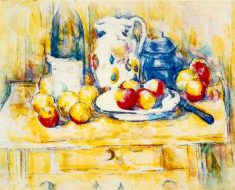 最初画家上田耕造想要表现阳光照射后的脸的对比效果,所以画了正在亲密对话的一对男女。但是大胆切除男性对象后,反而形成了有故事的女性形象构图。当给水彩画加画框时,适当改变垫子的形状,还可以修整出新的构图,这也算是水彩画的一个优点。