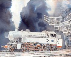 这幅作品是在里昂街头角落的一家咖啡厅里完成的,其中的作画对象是正在亲密交谈的年轻恋人。画家上田耕造在当地一家画材店购买了厚厚的画纸,期待看到它的强防水功能及透亮的着色效果,所以特意创作了这个作品。