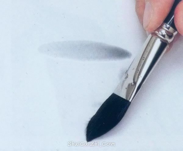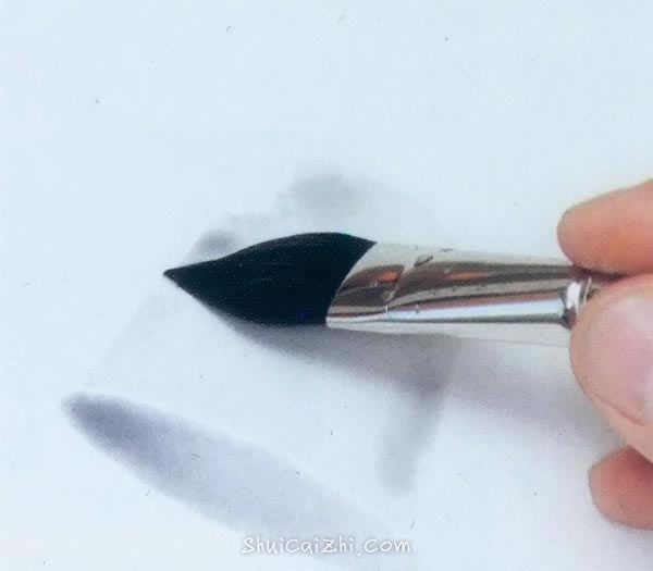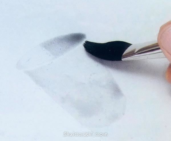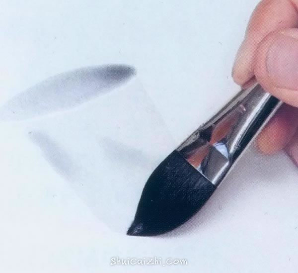 使用中性灰颜料仔细描出纸杯的内侧形状——椭圆形。