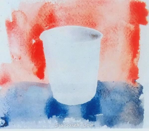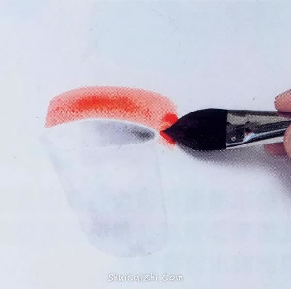 纸杯边缘看起来比较亮。把边缘部分空出来,仔细涂其周围的背景色彩。