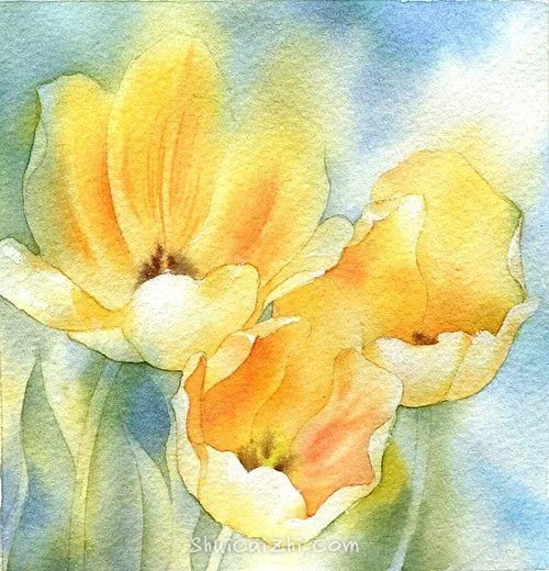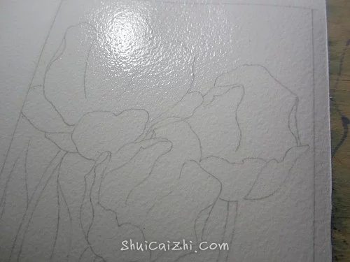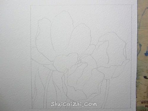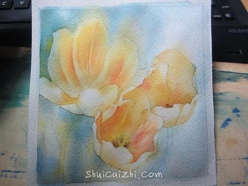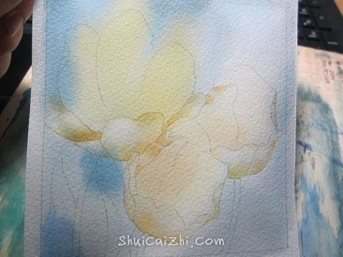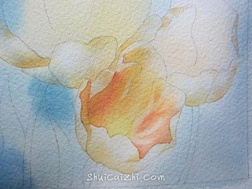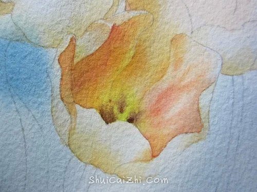 (7)把花瓣内部的碗状结构当做一个整体来画。方法也是全部打湿,然后分层描绘。