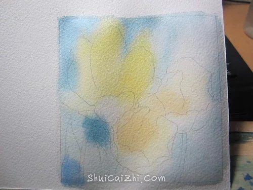 (2)整体刷一层水,铺上底色。
