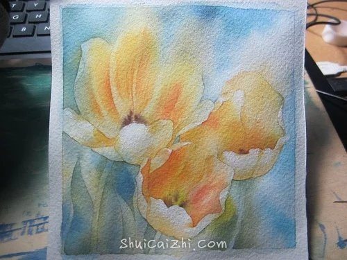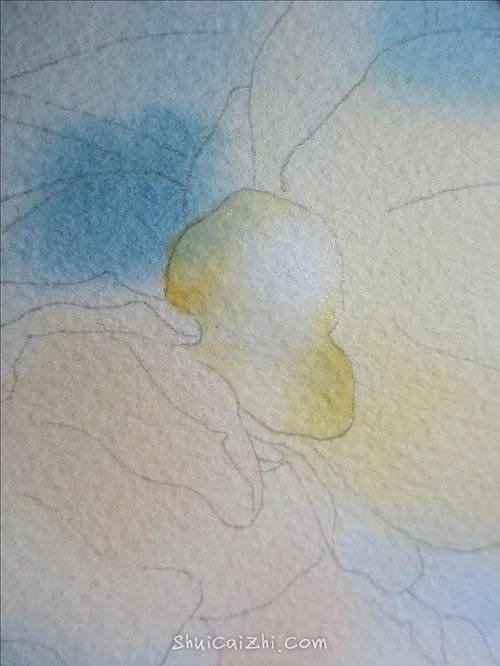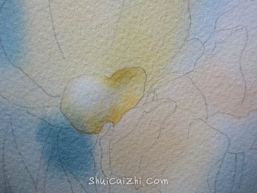 (8)前面层次干燥之后,打湿花蕊周围,半干时画上花蕊