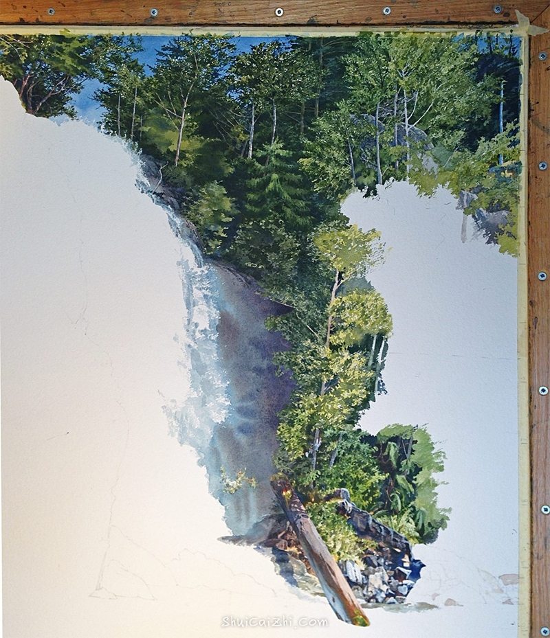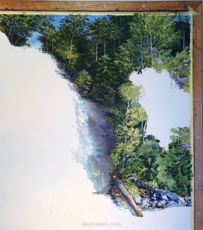 加拿大Carol Evans风景水彩瀑布绘画过程 创作教程 水彩画 · 2015-10-29 加拿大水彩女画家Carol Evans的作品,非常的写实,她的作品喜欢描绘自然风景,特别是海,湖泊,河流,也就是水的描绘,不仅真实,而且非常的动人。之前我们分享了她的海滩的绘画过程,今天再分享下他的瀑布过程。下面我们分享下她的创作绘画过程步骤图,共大家学习和研究。 另外本站有Carol Evans的水彩画作品请移步欣赏! Carol Evans作品集 海滩创作过程 分页: 1 2 3 绘画步骤