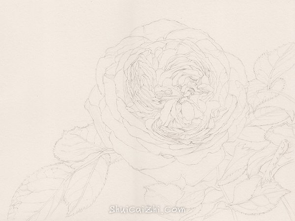 先起个稿,从大轮廓开始,慢慢细致刻画,就是花朵比较繁琐一些。