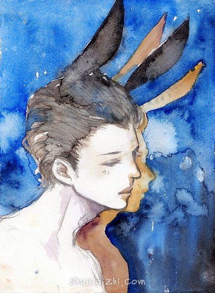 (这是vin.tam的,他貌似是用梦法尔?木浆纸最适合表现这种浪漫淋漓的水痕了~)