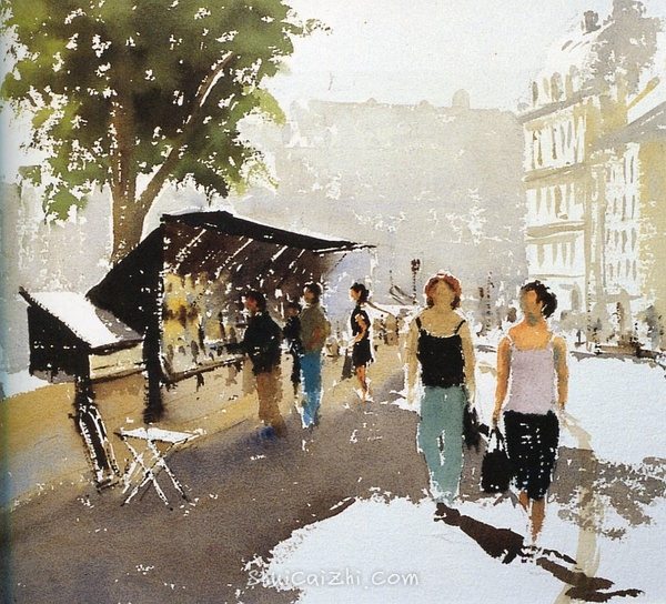 1吸水性差,也就是画上去之后水会在纸面上存一会,而不是立刻被吸进纸里。这个特点使得在木浆纸上可以制作水彩的某些特殊肌理,比如湿画法的某些混色、某些水渍特效、还有水彩特有的水痕等。