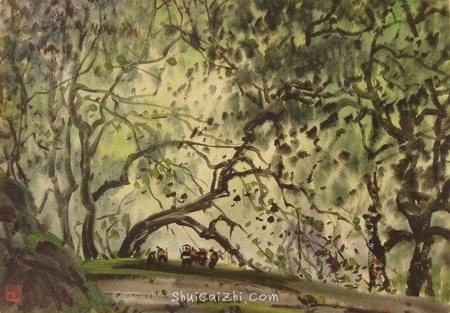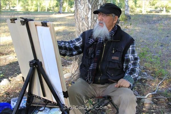 他几乎每年都要到遥远的地方去写生,足迹遍布帕米尔高原、世界屋脊拉萨、海南的热带原始森林、瑰丽的西双版纳、蓝蓝的青海湖、红红的吐鲁番和美丽的阿尔泰。他独自一人遨游在密林深处,沉醉在那梦幻般的美丽的湖边,他流连于大自然的纯真之美,忘记了身上的高烧病痛,孤独一个人行走在自然之中。