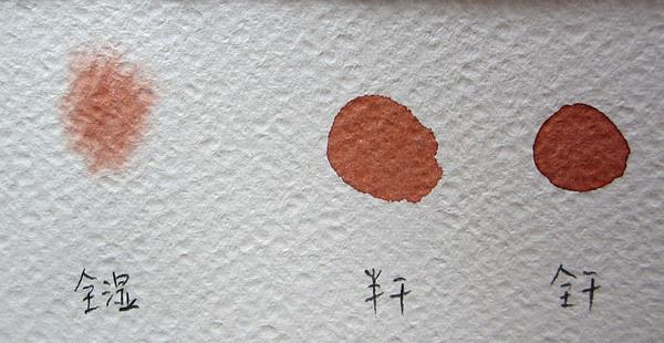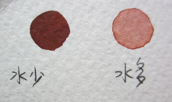 3 同等比例的水和颜料的情况下,笔刷上的水量