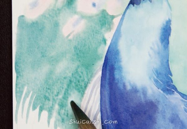 STEP2:用吸水性强的画笔蘸取水分足够的颜料对背景上色。