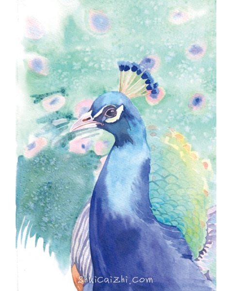 STEP1:先将孔雀的主体和羽毛画出,融入背景的尾巴适当地减淡、虚化。