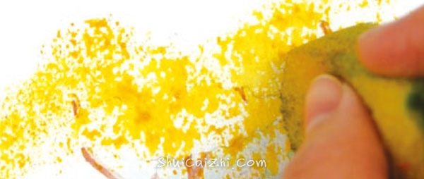 即用海绵做出特殊的画面肌理效果。并且不同的海绵,肌理效果也会不同,常用的一般是人造海绵。天然海绵相对较贵,但是肌理也会更自然好看一些。