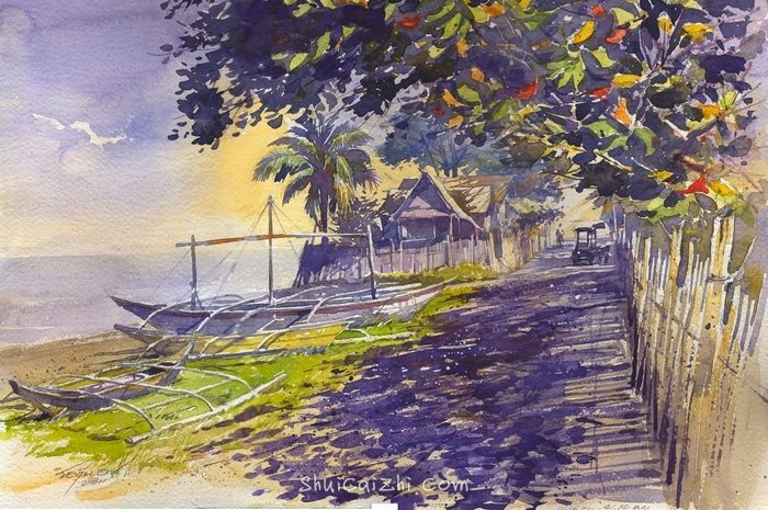 首页 菲律宾Edbon Sevilleno伊德伯恩·塞文尼洛风景水彩画
