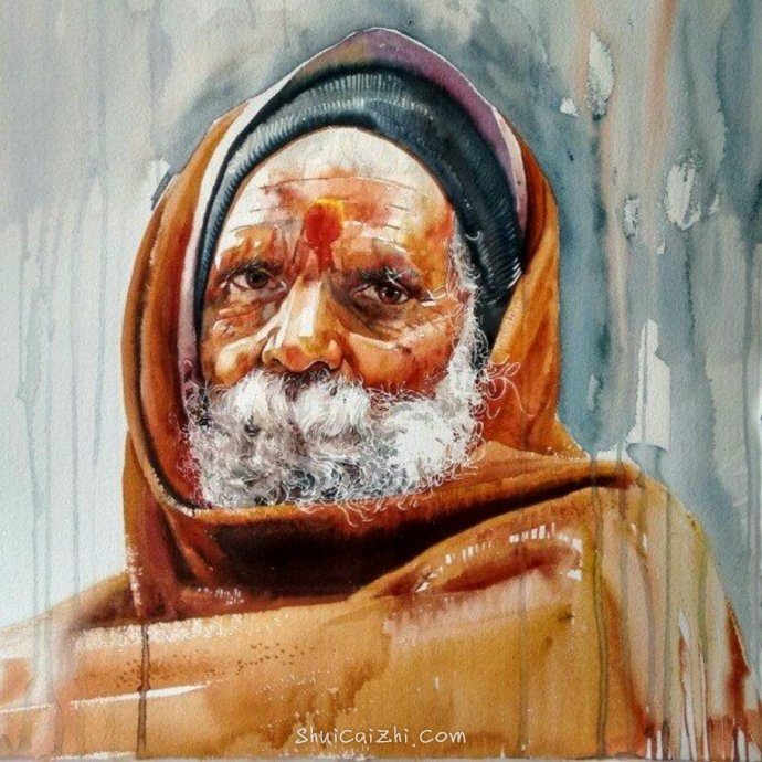 印度艺术家Rajkumar sthabathy肖像水彩画欣赏 (10)