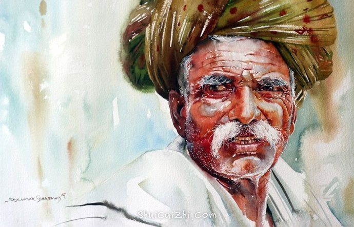 印度艺术家Rajkumar sthabathy肖像水彩画欣赏 (13)