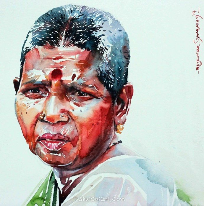 印度艺术家Rajkumar sthabathy肖像水彩画欣赏 (24)