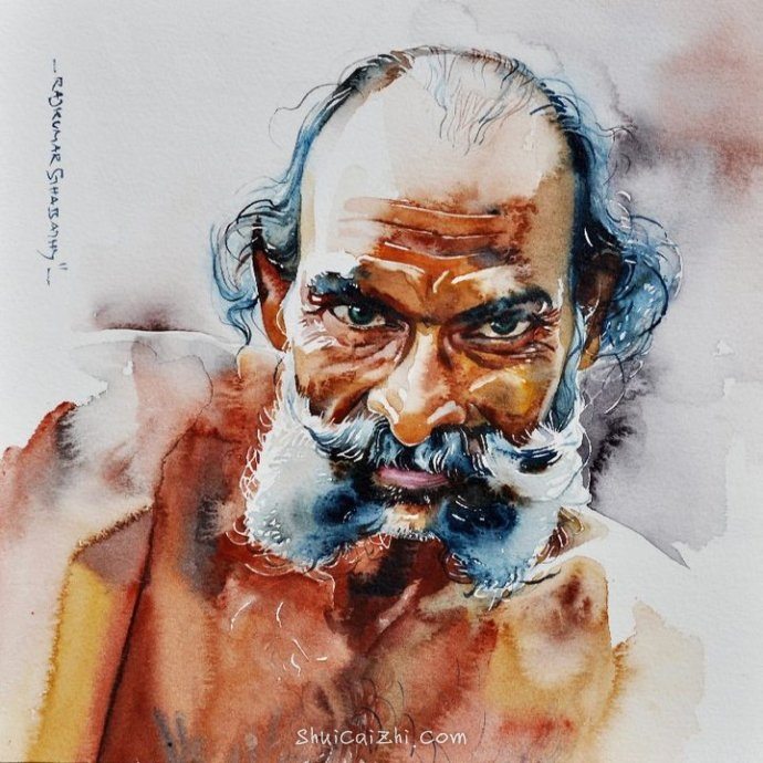 印度艺术家Rajkumar sthabathy肖像水彩画欣赏 (7)