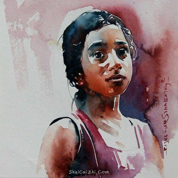 印度艺术家Rajkumar sthabathy肖像水彩画欣赏 (9)
