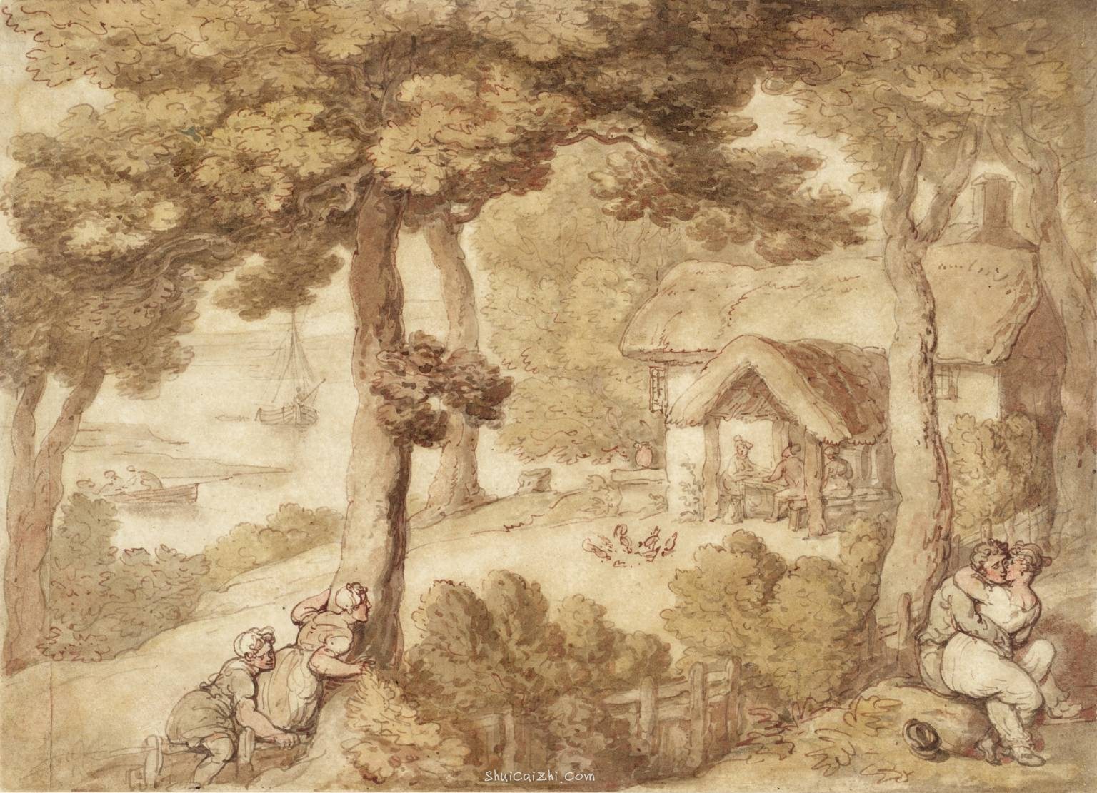 托马斯·罗兰森(Thomas Rowlandson)是17实际末和18世纪初的英国画家,他同时还是位艺术家和漫画家;而笔者介绍其水彩画风景技法,可从下文即将展示的托马斯·罗兰森水彩风景画图片中观察出来,托马斯·罗兰森的风景水彩画技法是钢笔与水彩画法混搭使用,用水彩笔刷填色,让钢笔来勾勒外形轮廓,其中,一张水彩画作品是使用的版画的蚀刻技法和水彩画法混合使用创作而成。
