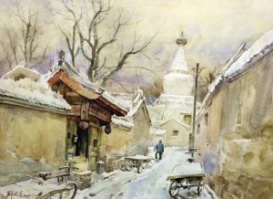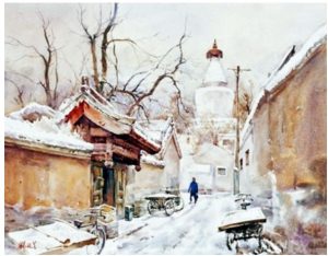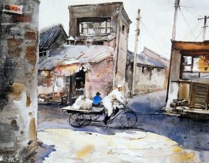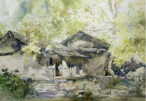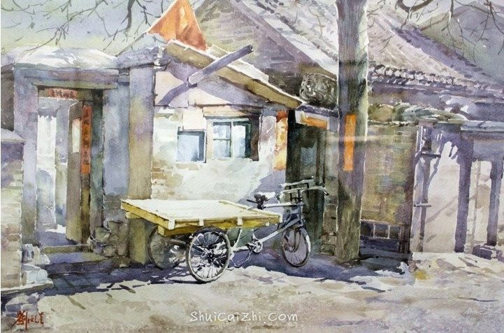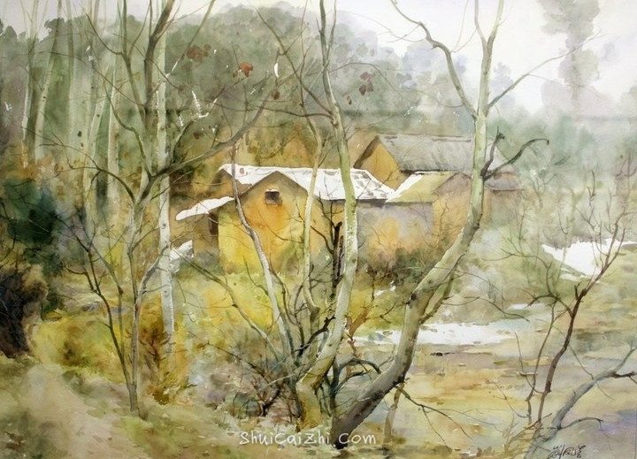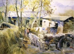 刘凤兰画风景,也画建筑屋字古迹遗存,但其中更偏爱画民居。这些普通人群生息居住的地方,体现着人与大自然的贴近与亲和,让人感到有一种天人合一的精神回归。