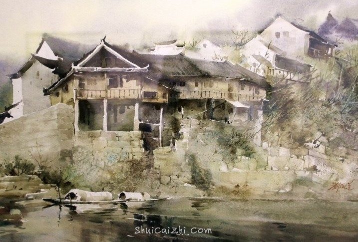 刘凤兰的水彩画以西洋水彩画技法为基础,融合了东方“以形媚道”观和“畅神”论,追求以心变物,心化自然,互融互契,创造形与神的融合,在神情超越中使胸中之笔化作淋漓的色彩,构成一幅幅韵味无限的水彩风景画,形成了她流畅洒脱的独特画风。