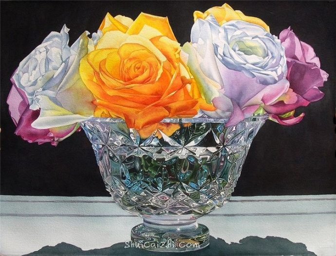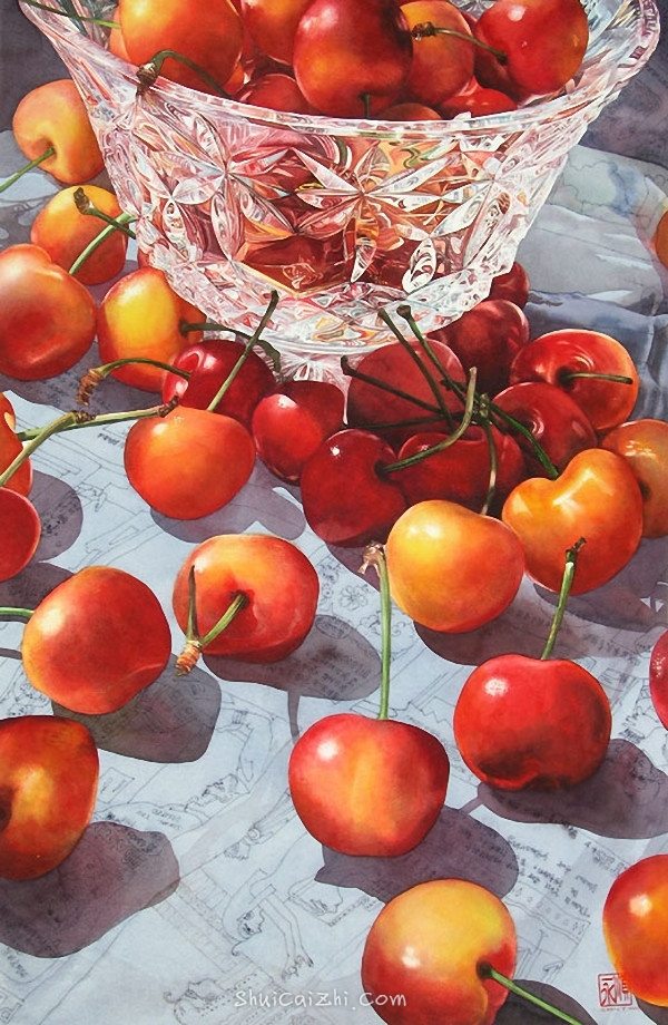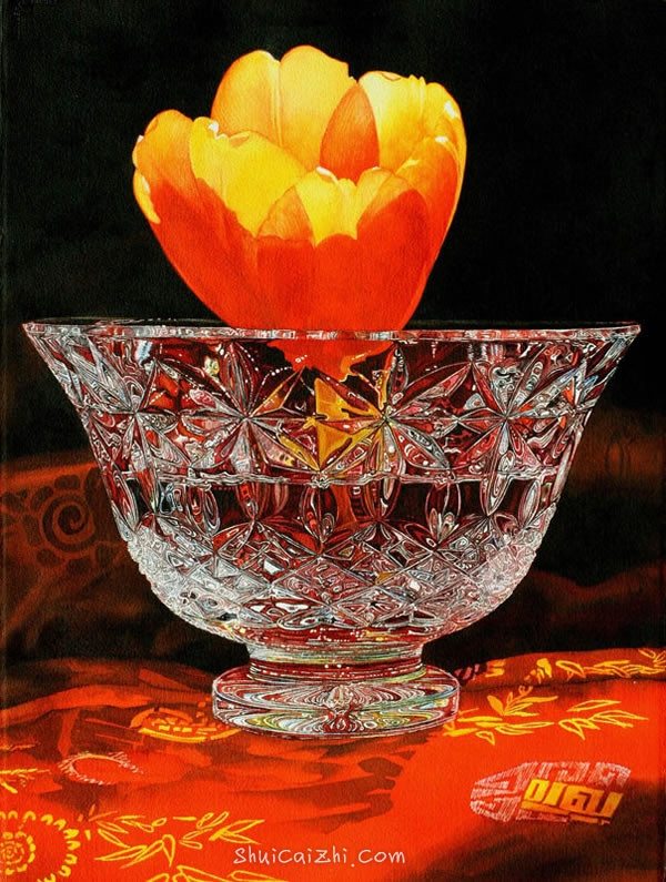 Soon Y. Warren静物花卉玻璃杯水彩画 佳作欣赏 水彩画 · 2016-09-22 Soon Y. Warren是一位专职艺术家和教师,擅长水彩画、油画,曾经出版过广受欢迎的绘画教学的书籍和视频。她的这组画作,鲜花、果实的色彩通过水晶玻璃瓶及水的折射透出,更显光彩华丽…