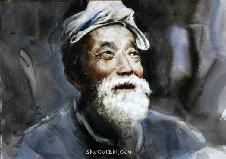关维兴的男士肖像人物水彩画-12